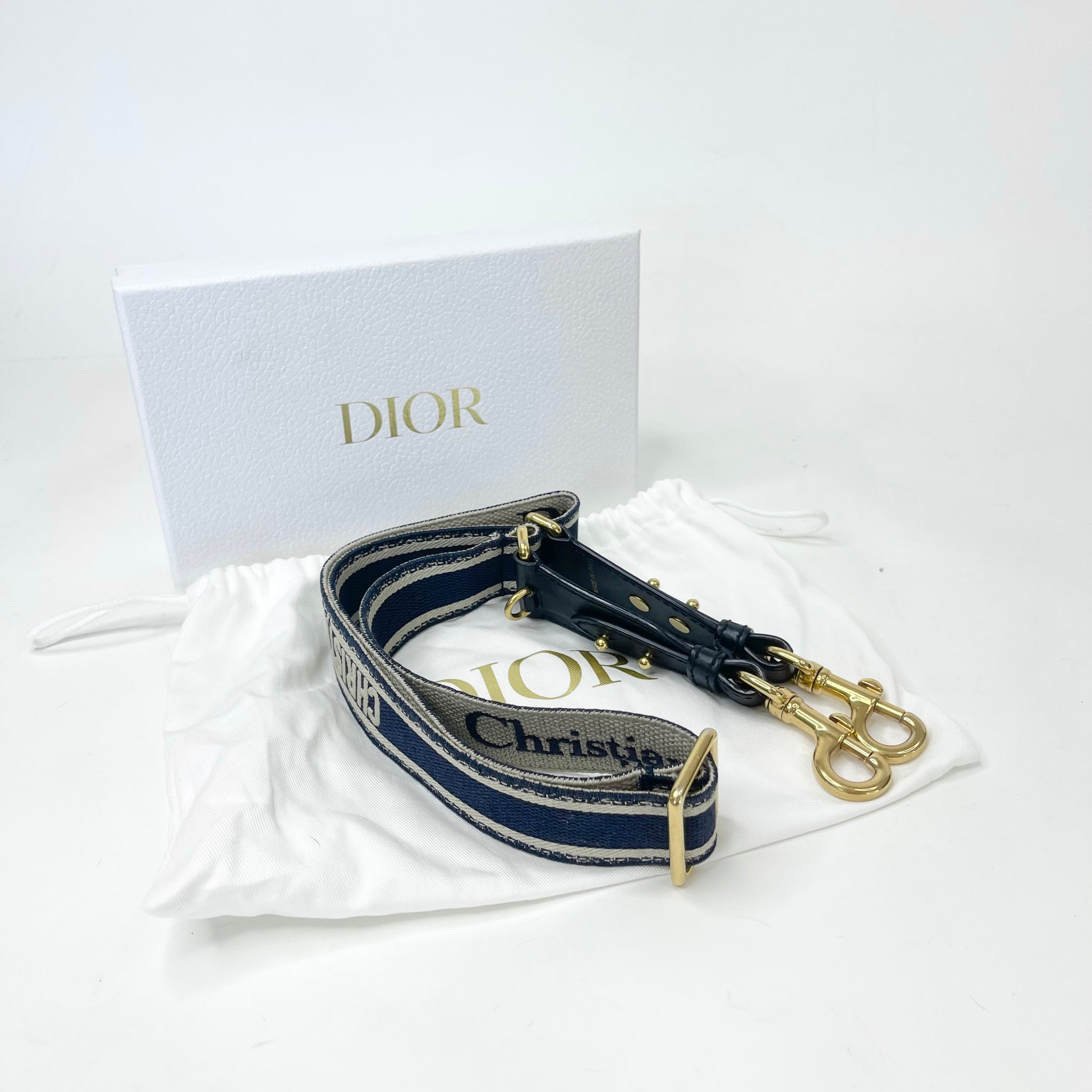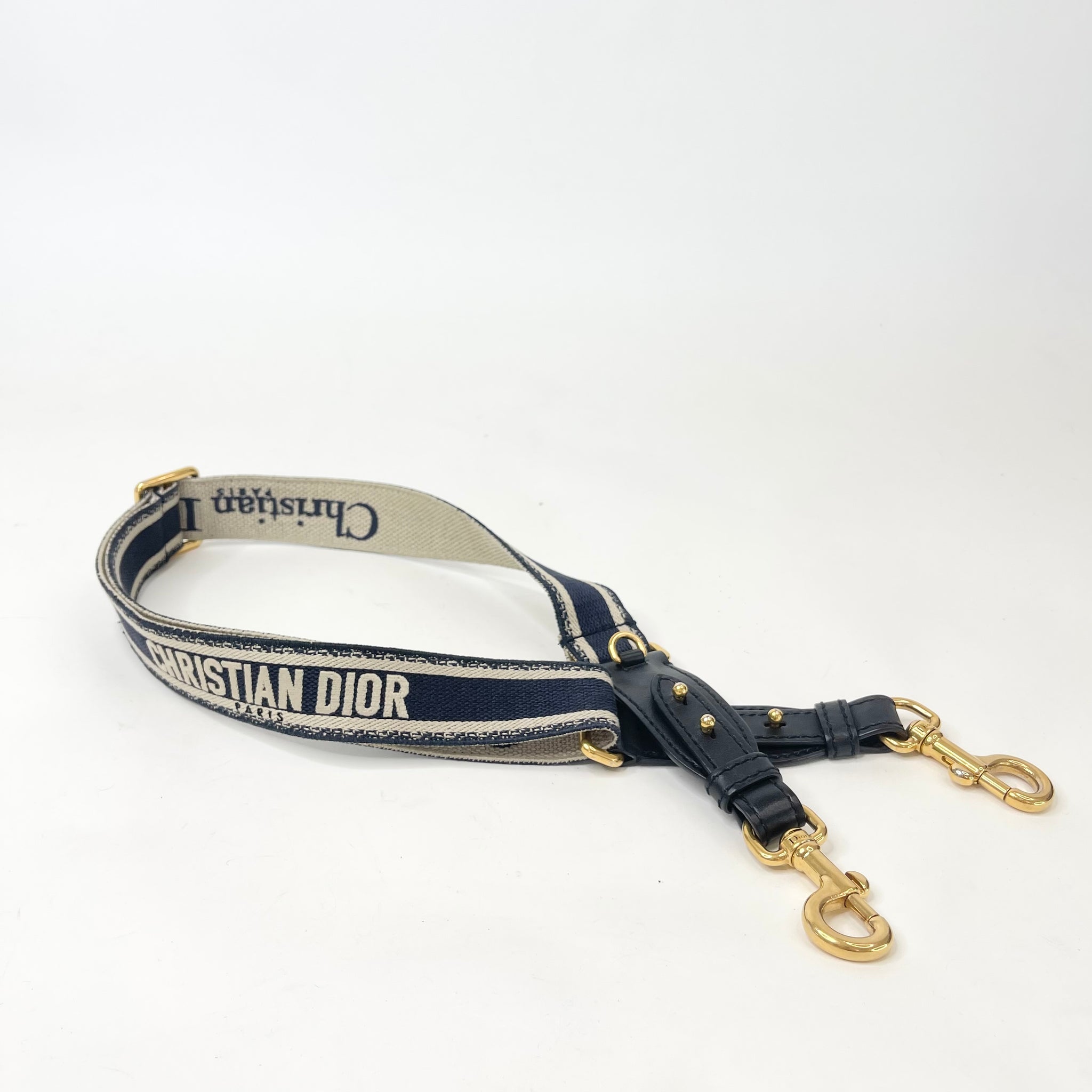 CHRISTIAN DIOR BLUE EMBROIDERED ADJUSTABLE STRAP W RING