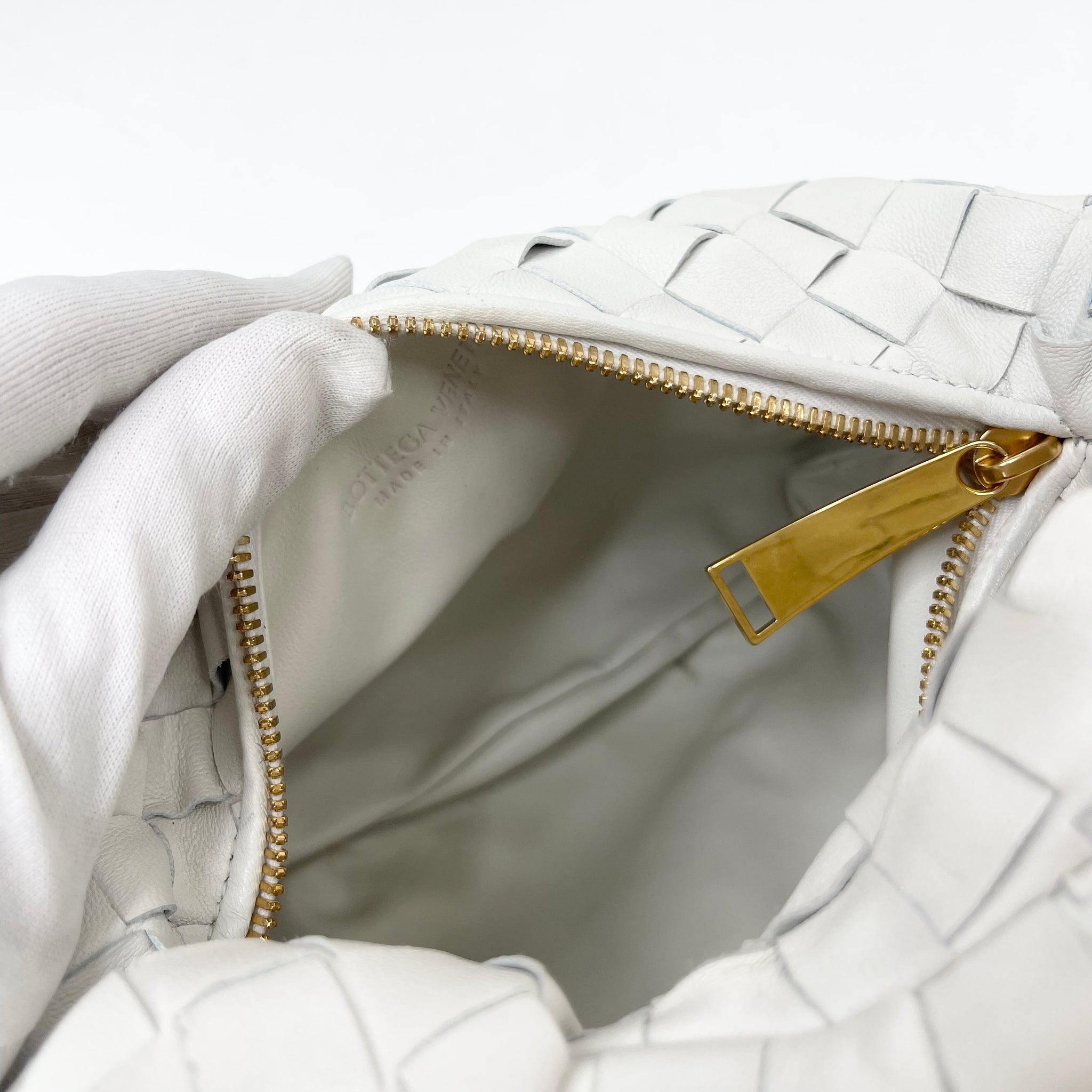 BOTTEGA VENETA MINI JODIE IN WHT INTRECCIATO LEA