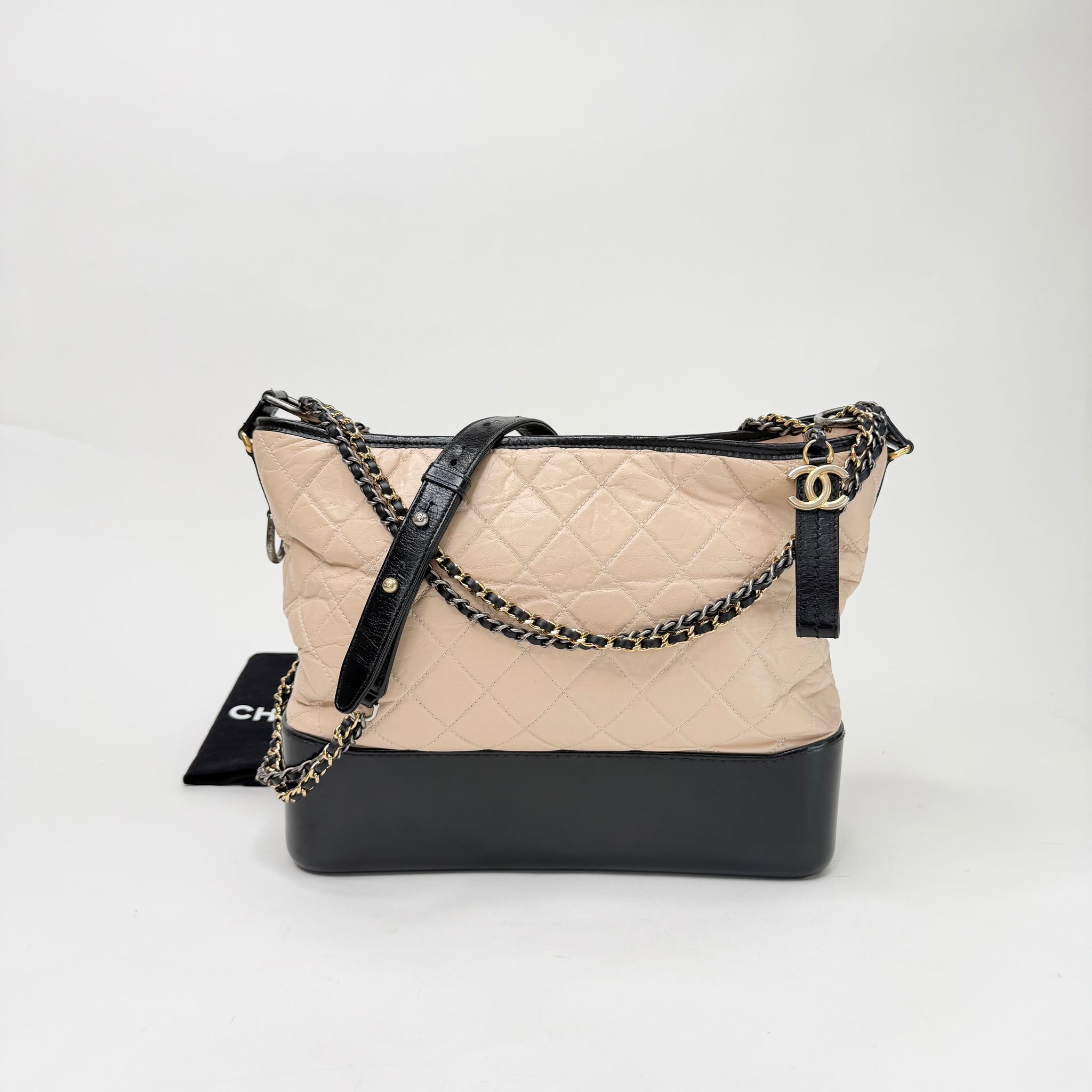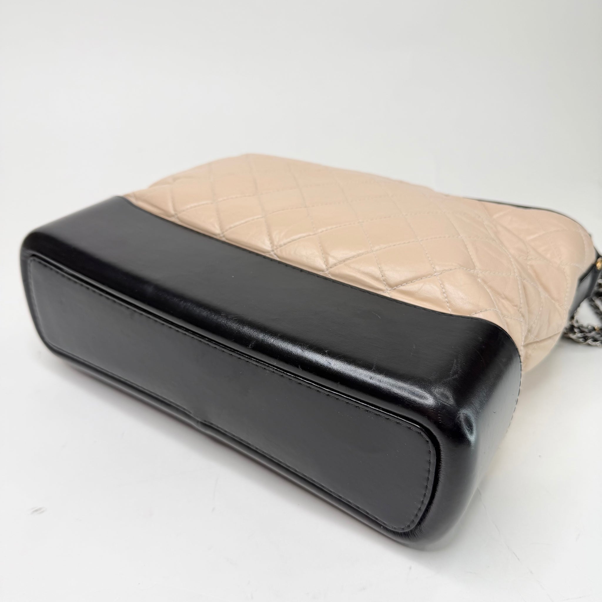 CHANEL GABRIELLE LARGE CRM & BLK LEATHER HOBO BAG