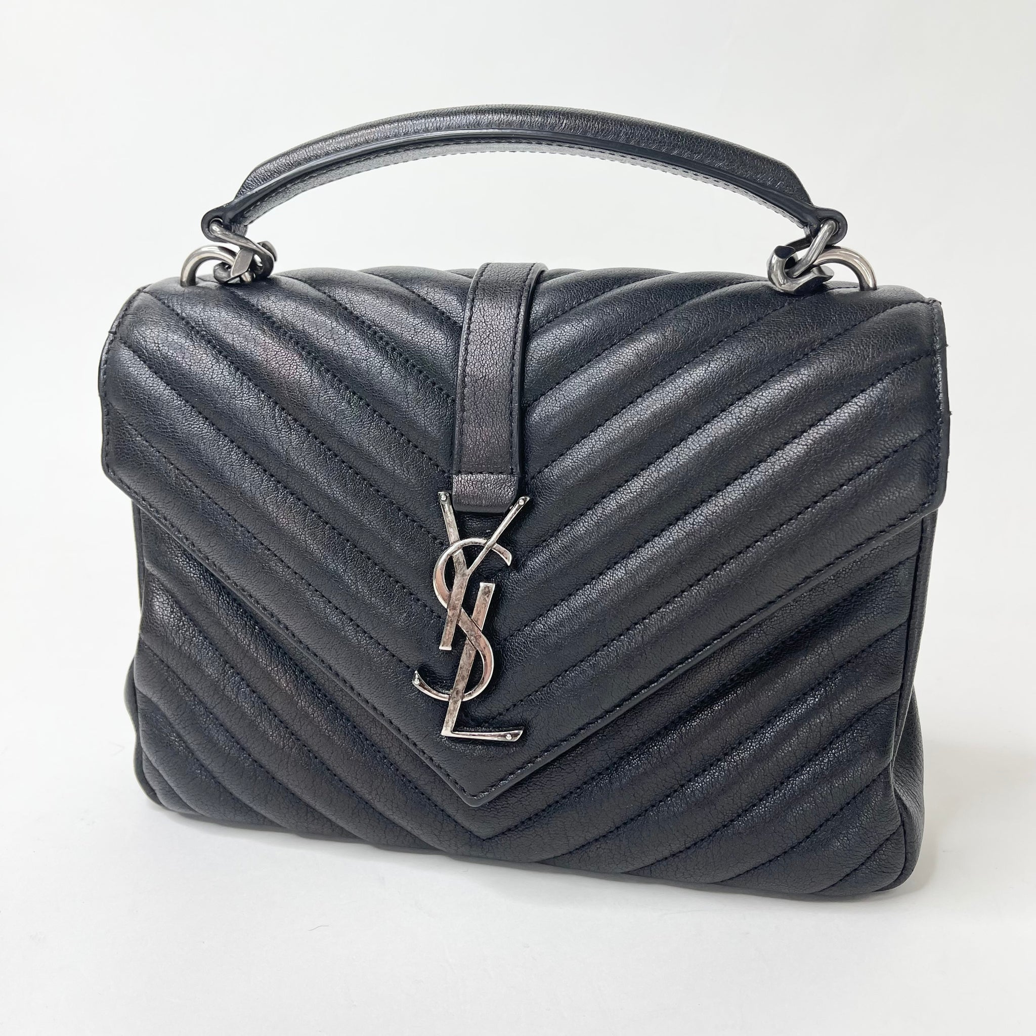 SAINT LAURENT MEDIUM COLLEGE BAG IN BLK LEA & RHW
