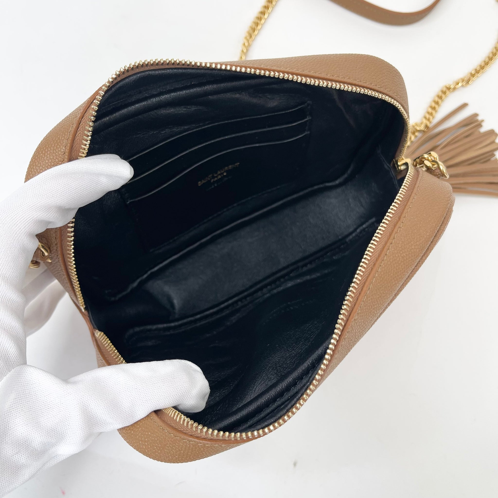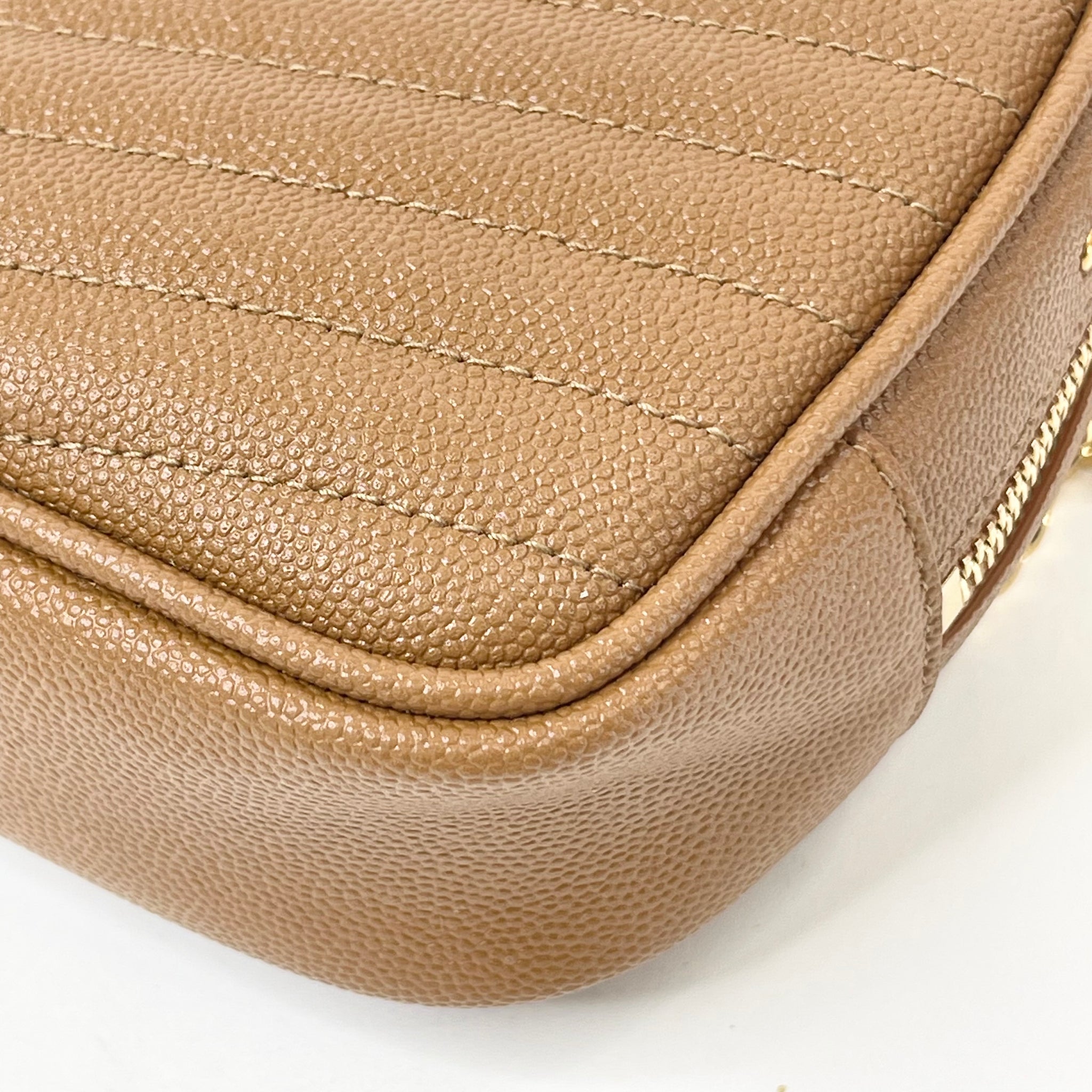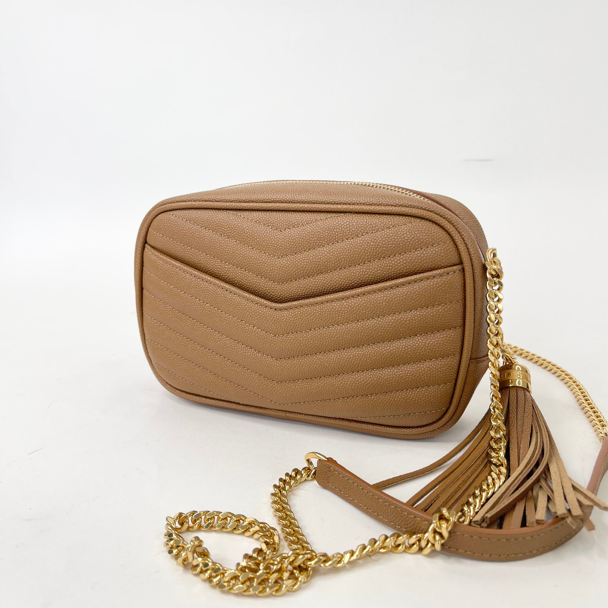 SAINT LAURENT MINI LOU CAMERA IN COGNAC CHEVRON GRAIN DE POUDRE LEA & GHW