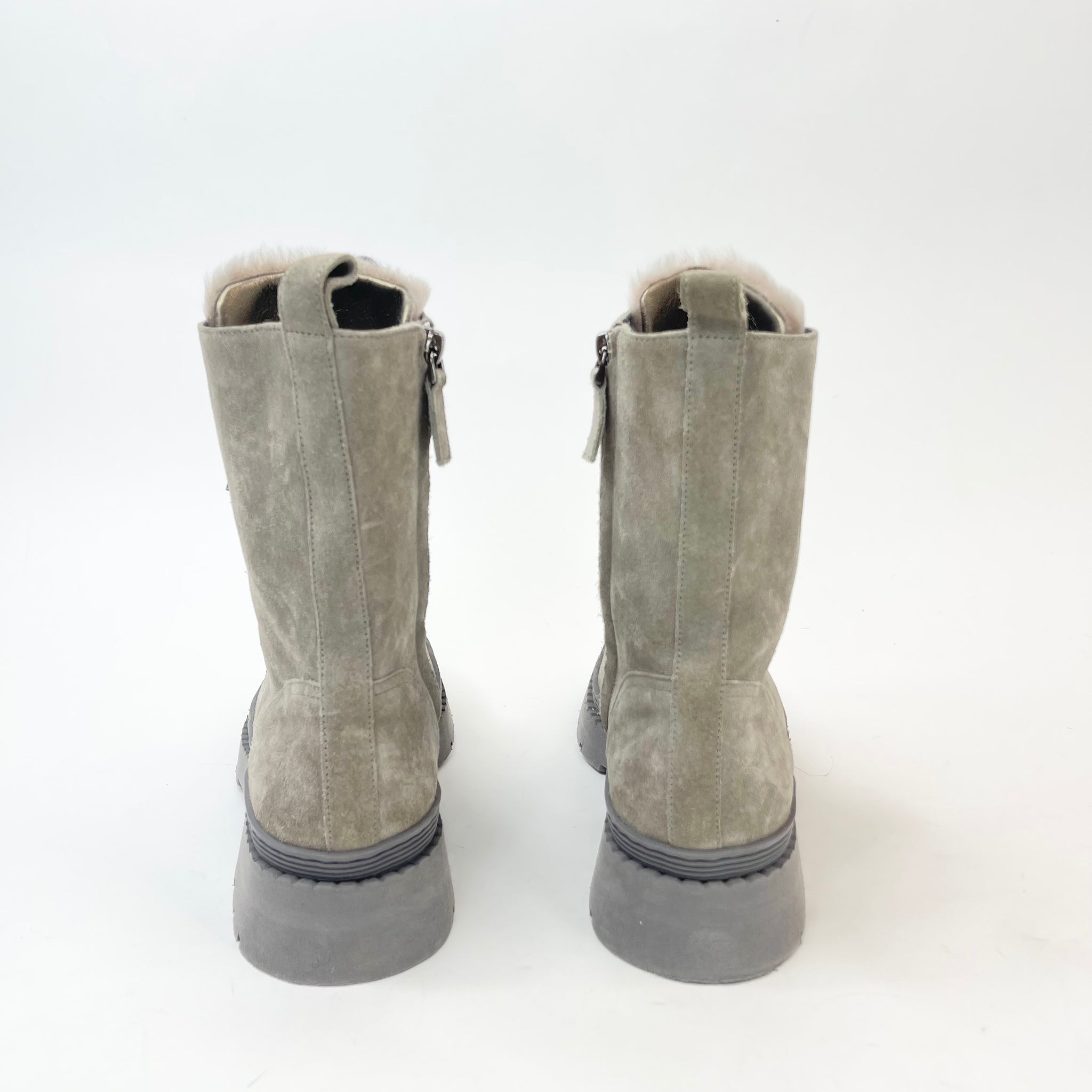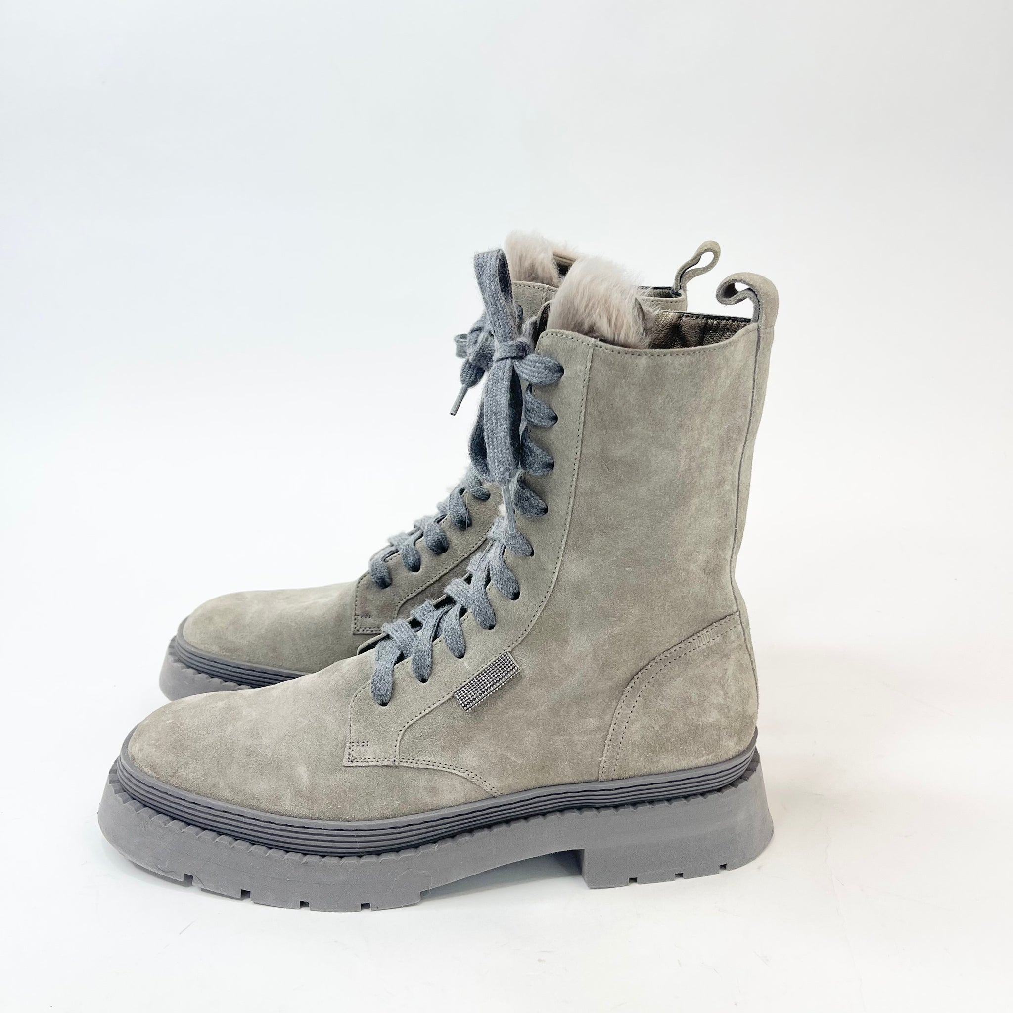 BRUNELLO CUCINELLI GREY SUEDE LACE UP BOOTS 41