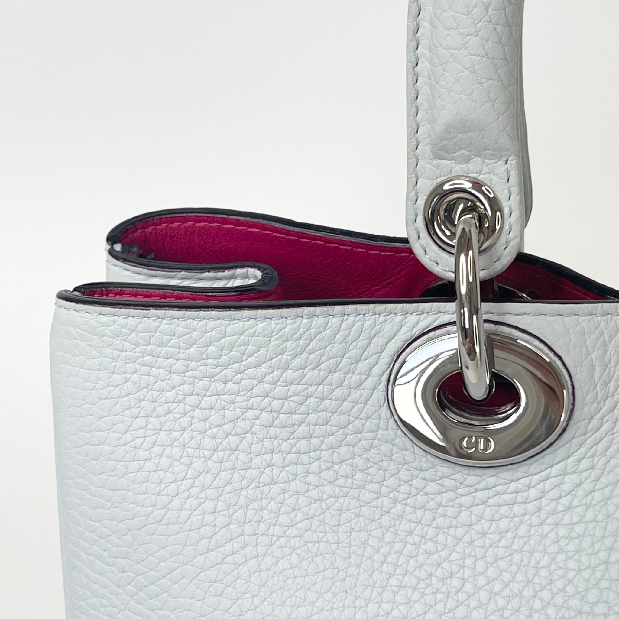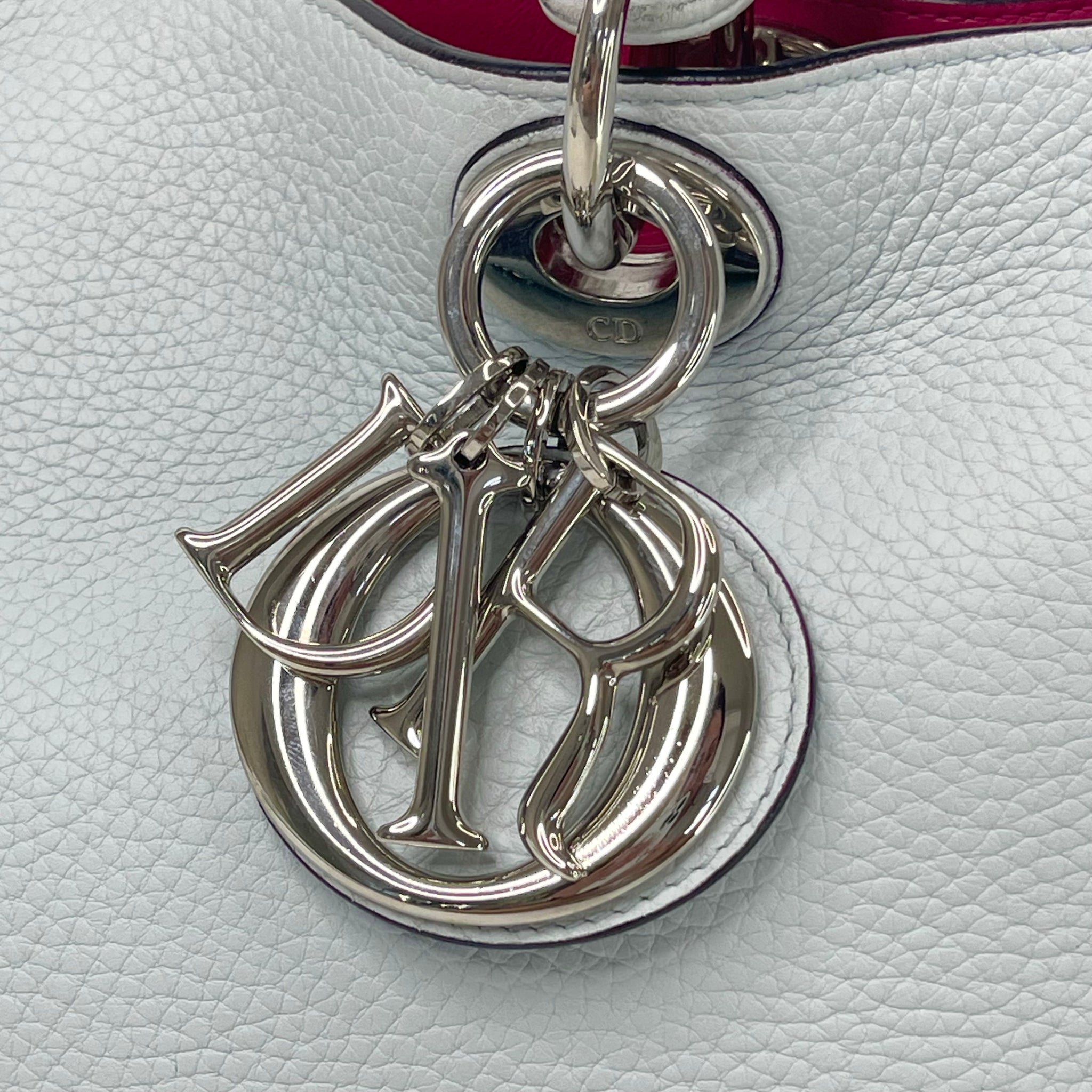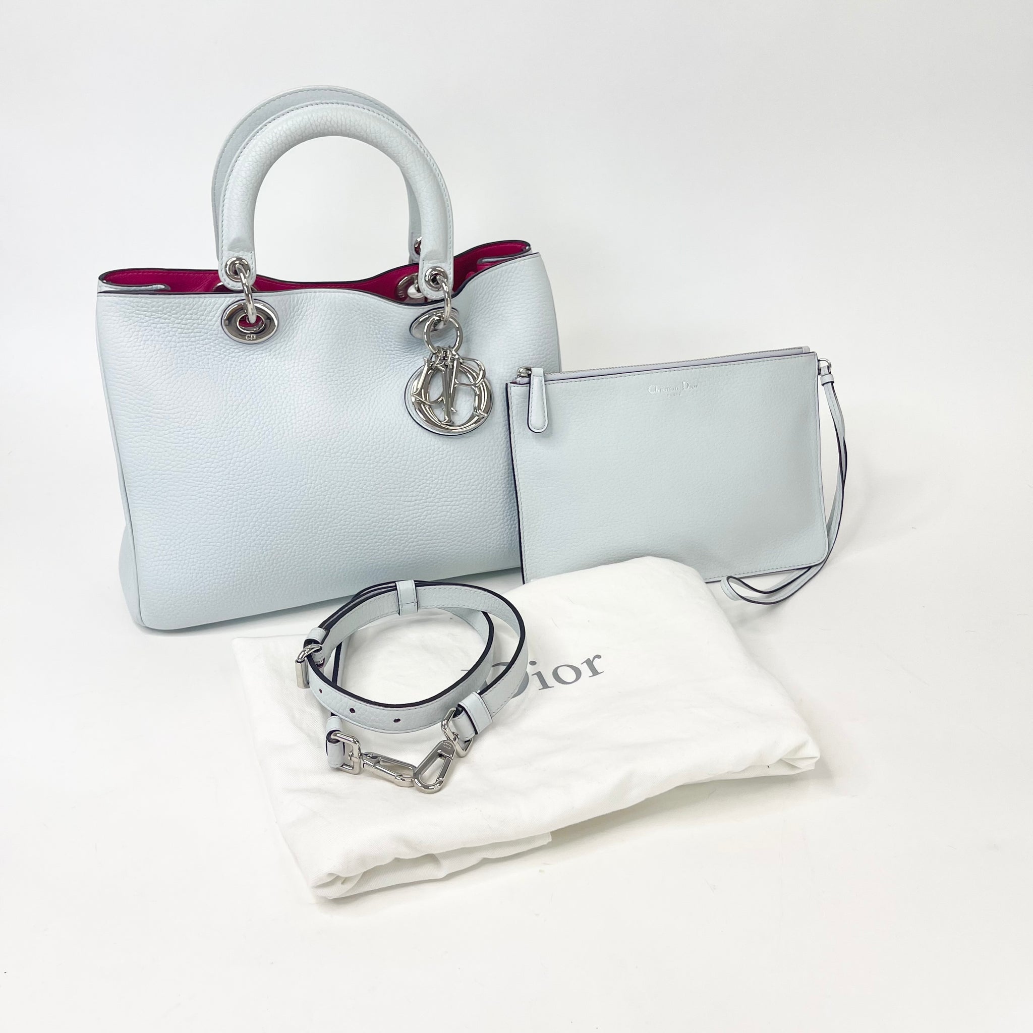 CHRISTIAN DIOR DIORISSIMO MEDIUM TOTE BAG + ZIP WRISTLET POUCH IN LT BLUE & FUCSHIA PEBBLED LEA & SHW