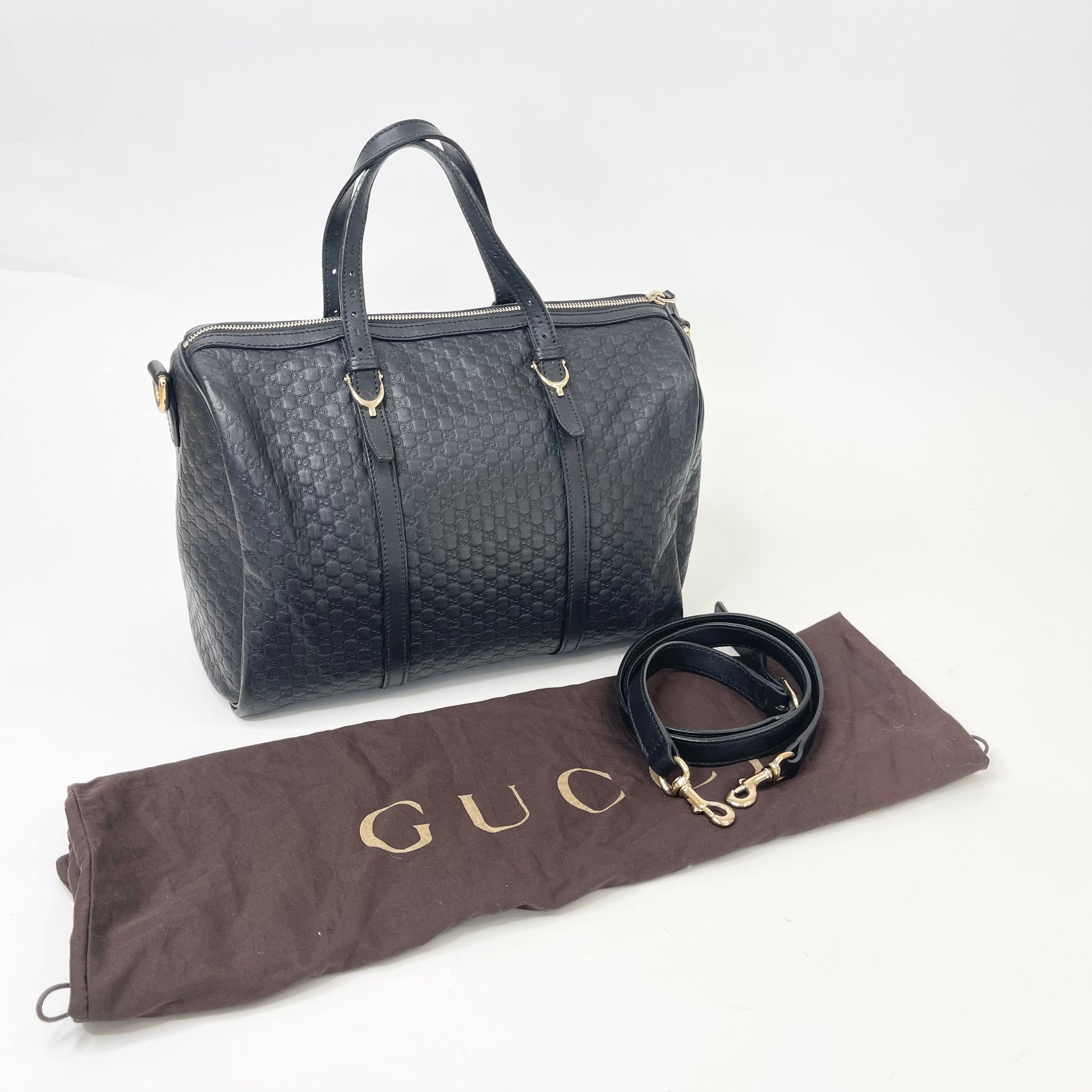 GUCCI JOY BOSTON 2WAY BAG IN BLK MICROGUCCISSIMA LEATHER & SHW