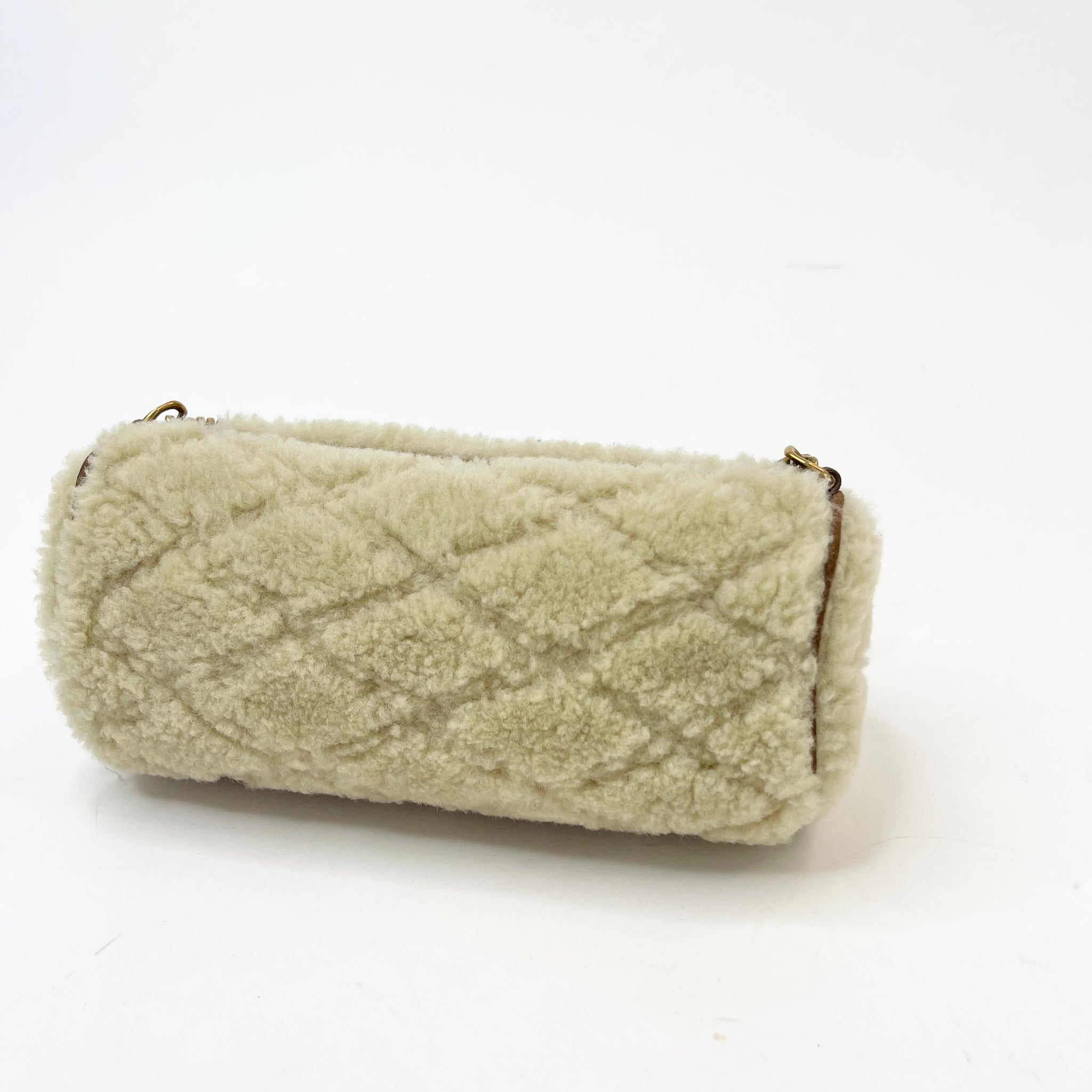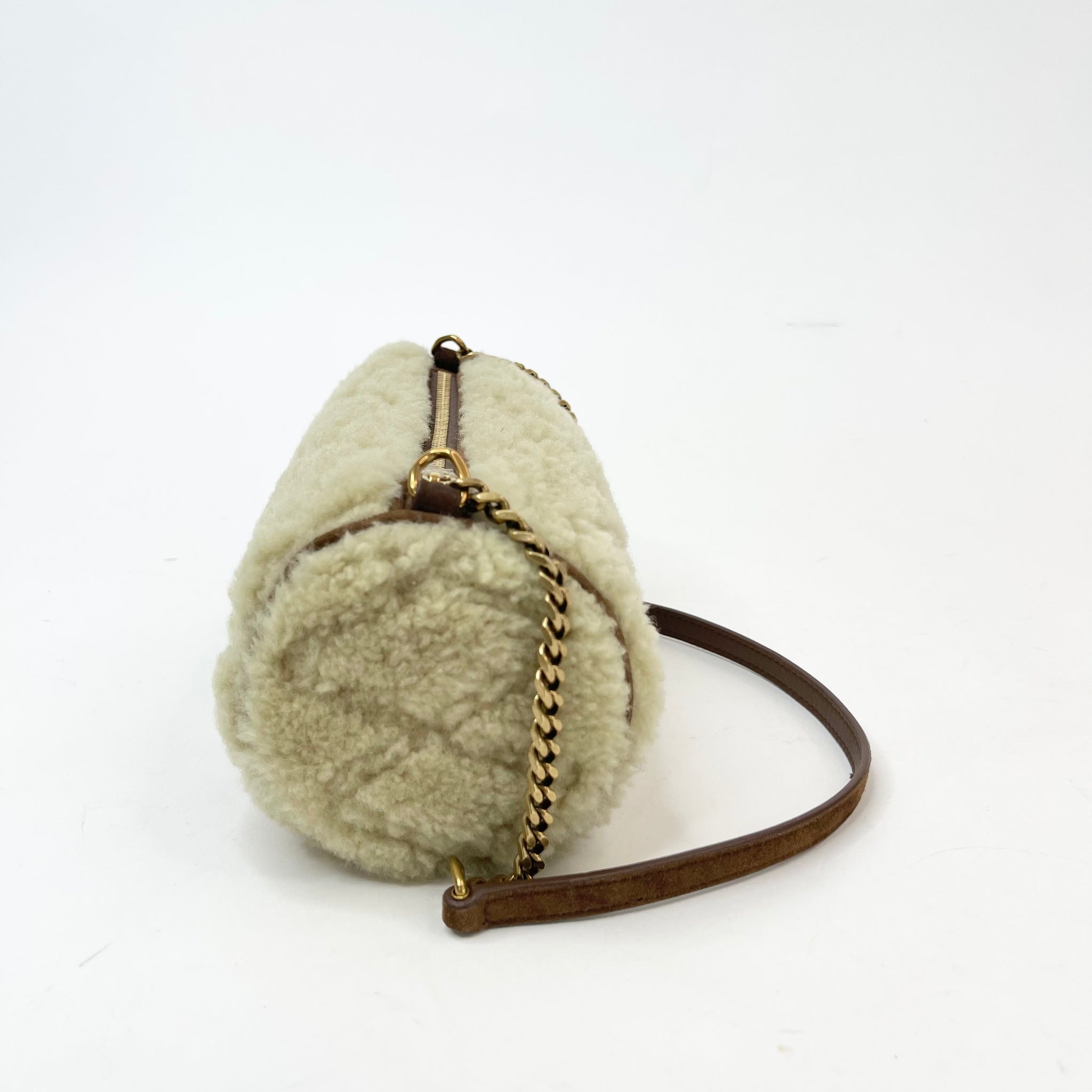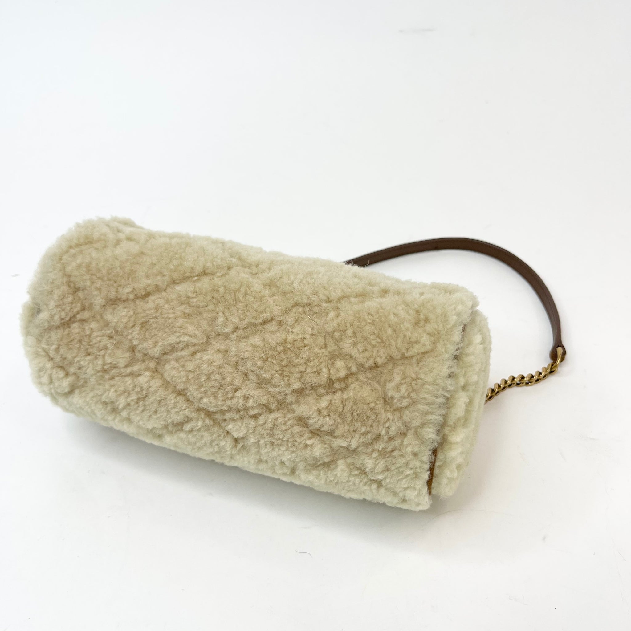 SAINT LAURENT SADE MINI TUBE IN BEIGE SHEARLING & GHW
