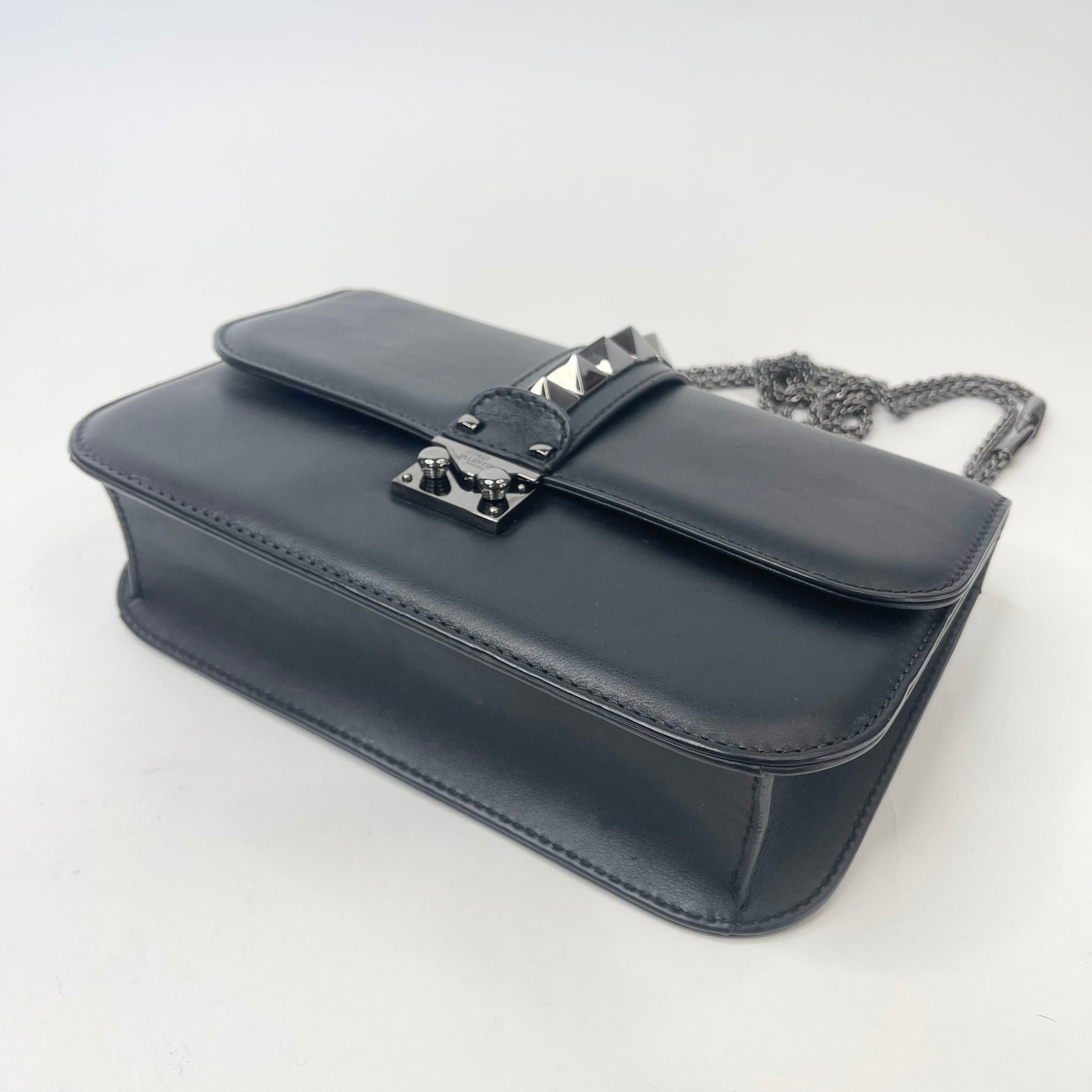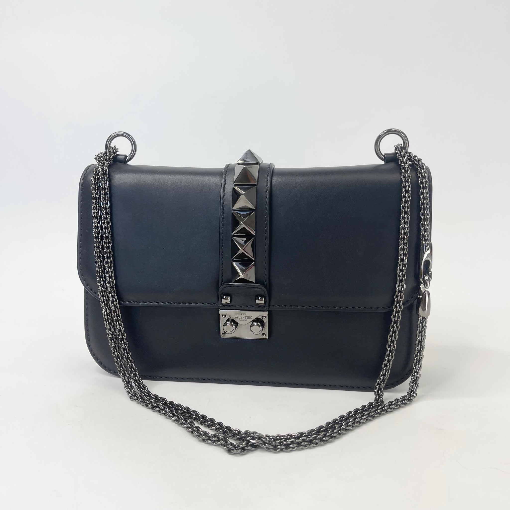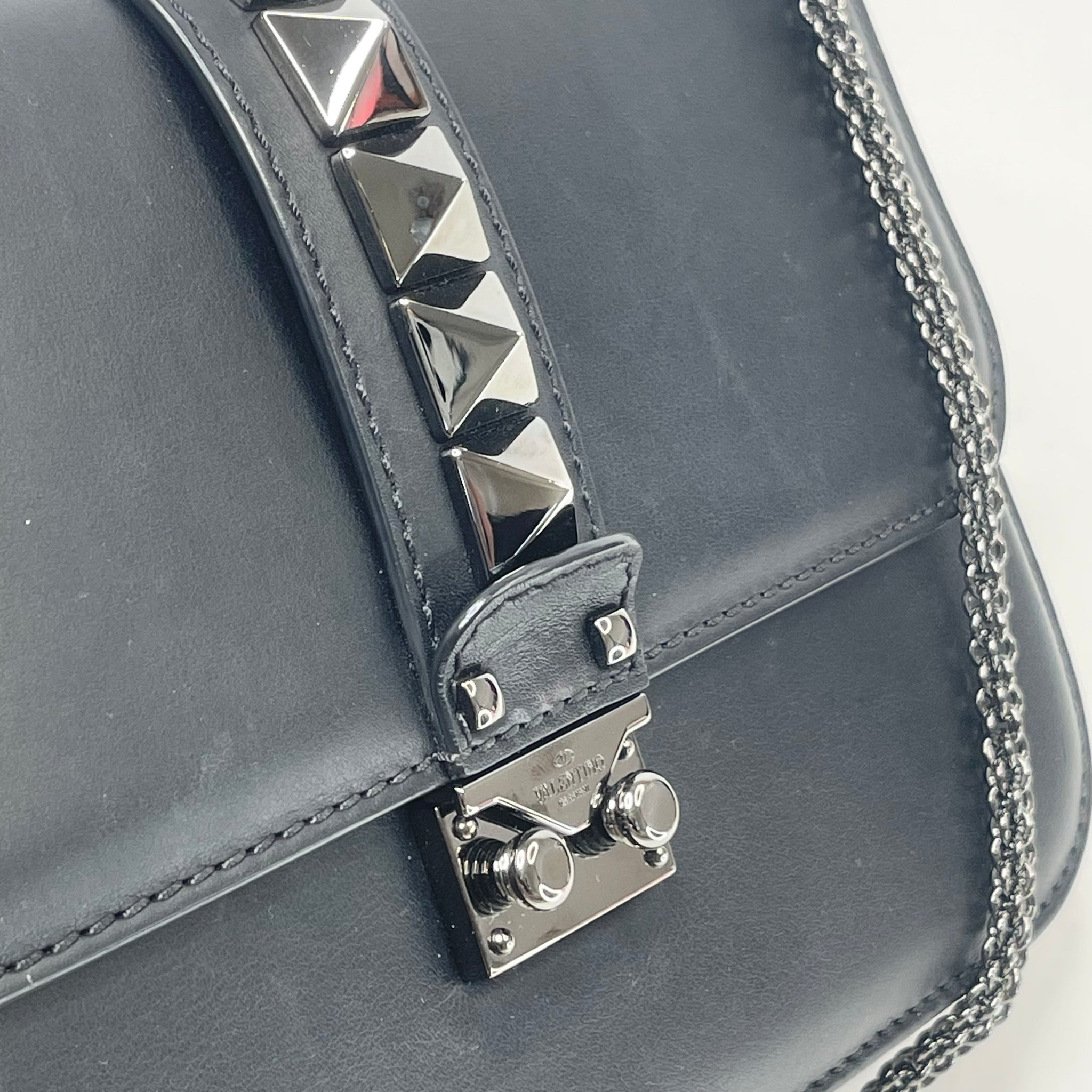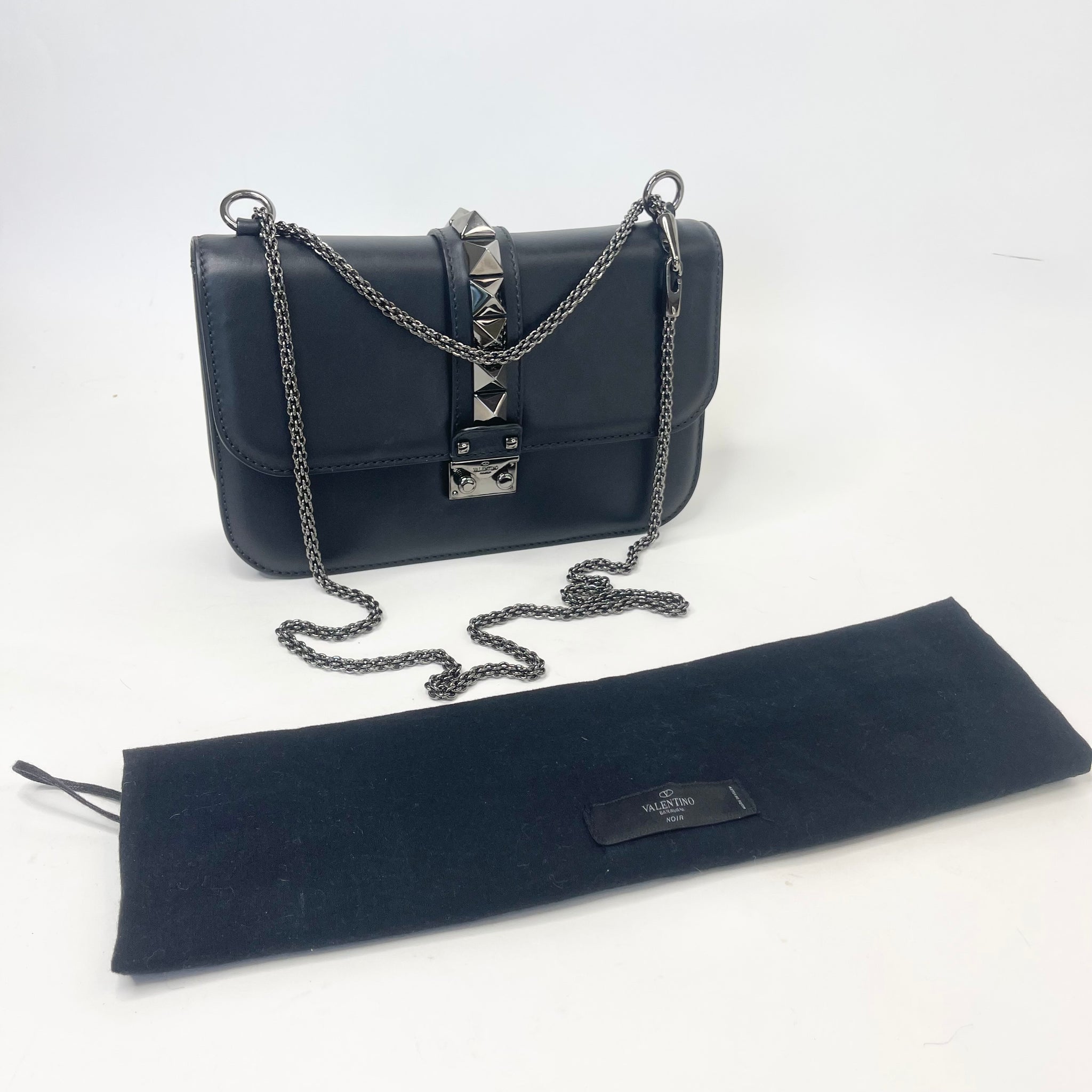 VALENTINO ROCKSTUD GLAM LOCK NOIR FLAP CHAIN CROSSBODY BAG