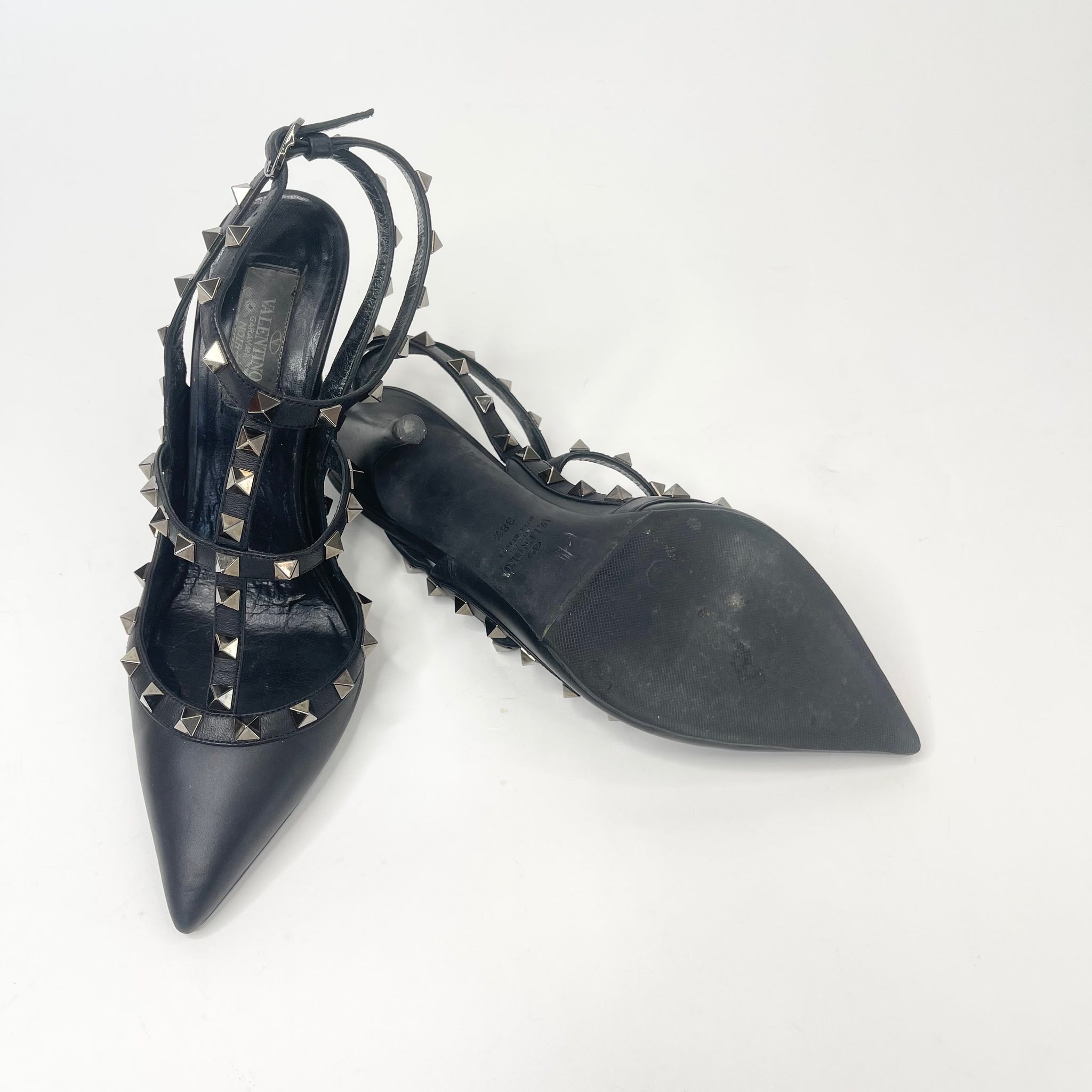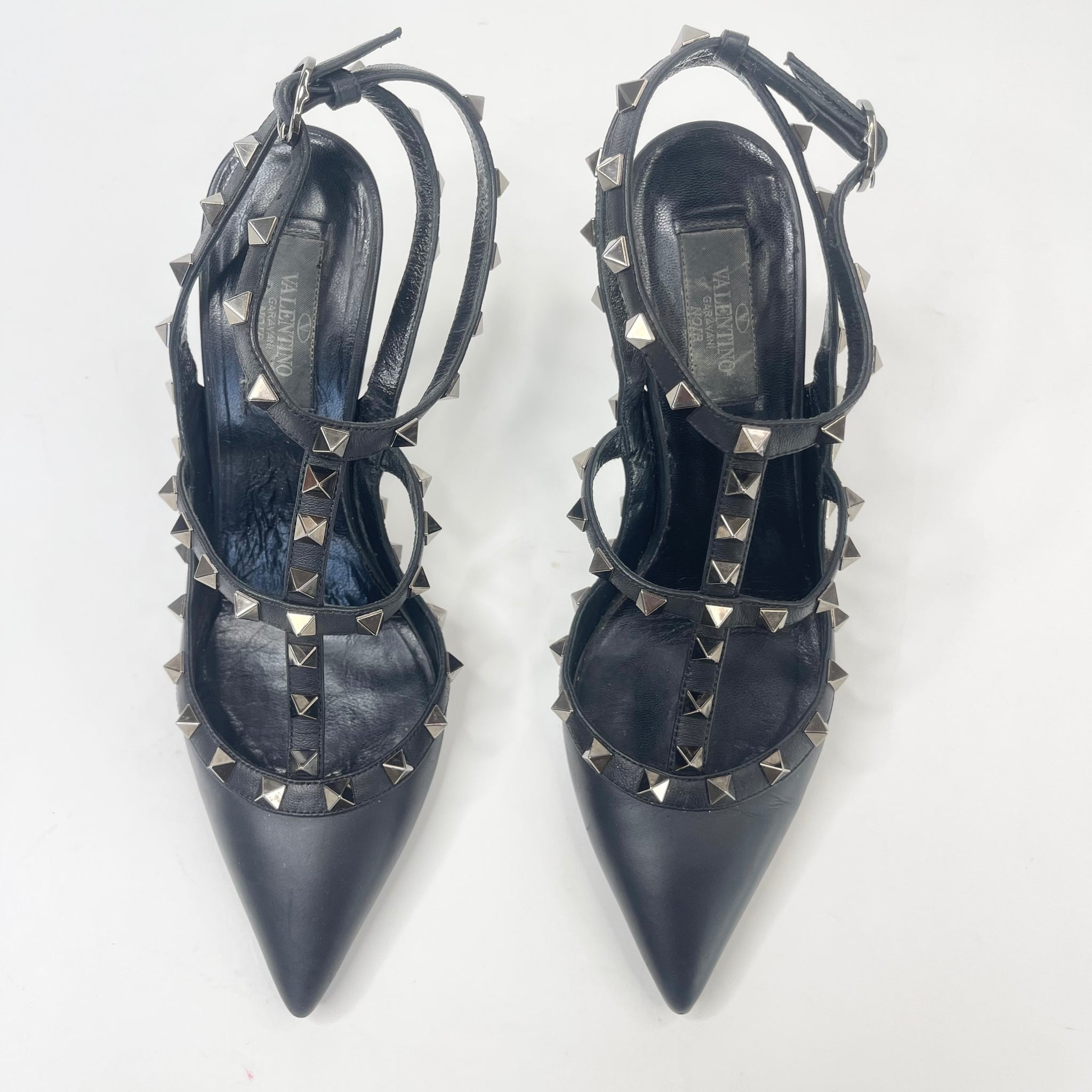 VALENTINO ROCKSTUD NOIR/BLK MATTE LEA PUMPS SZ 38.5