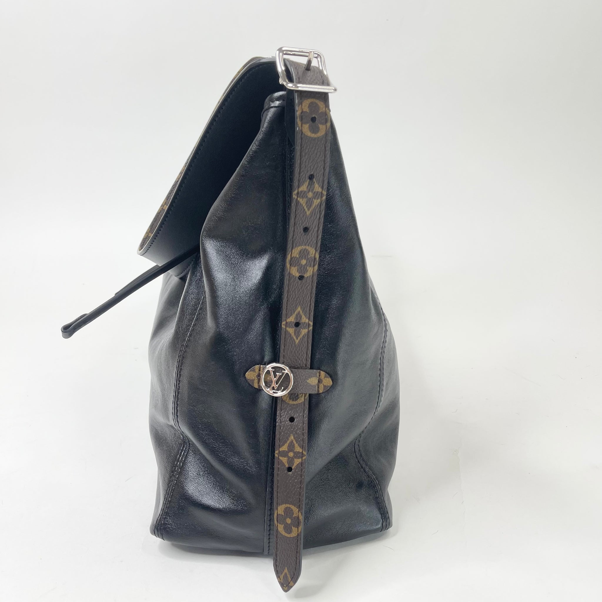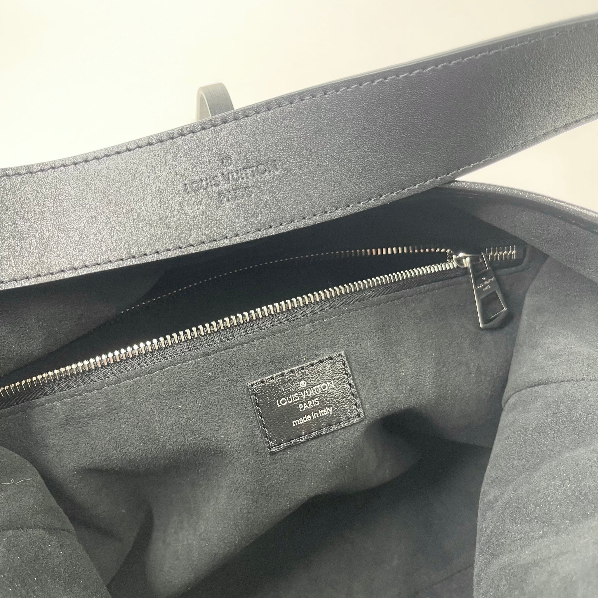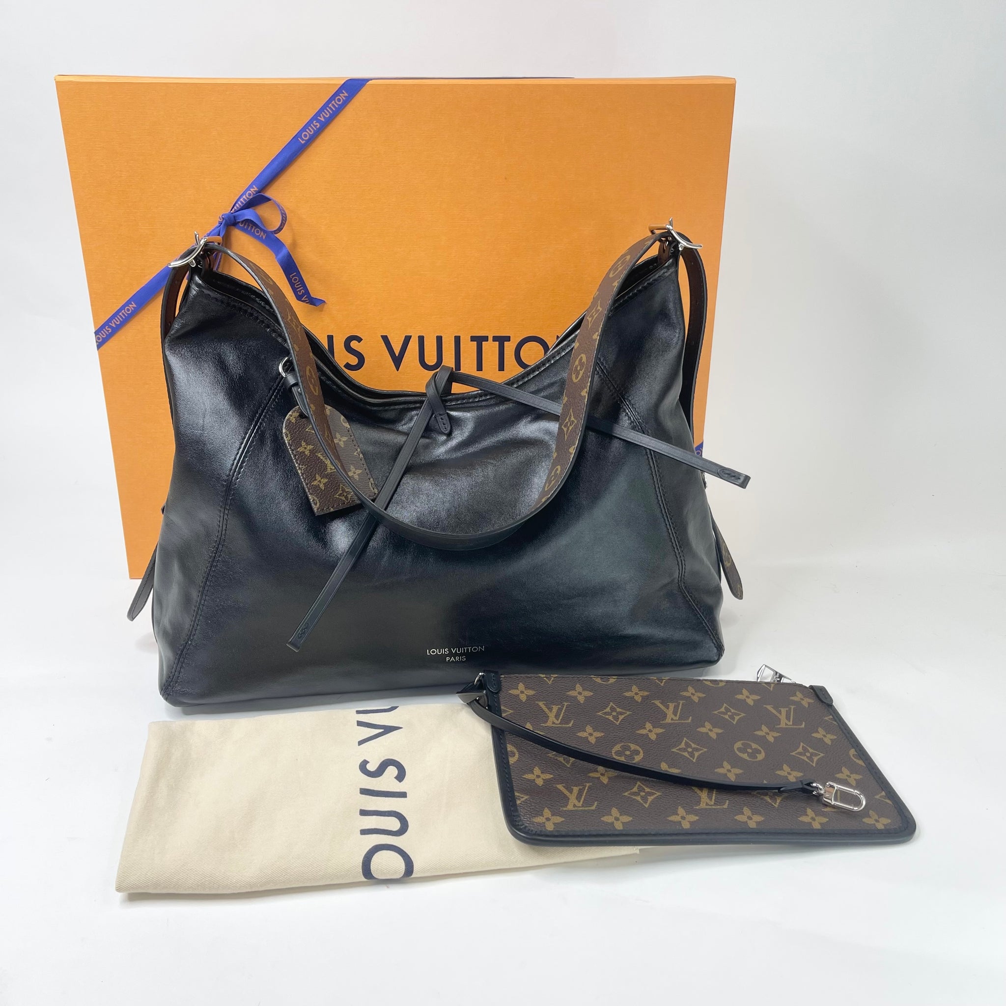 LOUIS VUITTON CARRYALL VIBE MM IN BLK LMSKIN LEA & SHW + POUCH