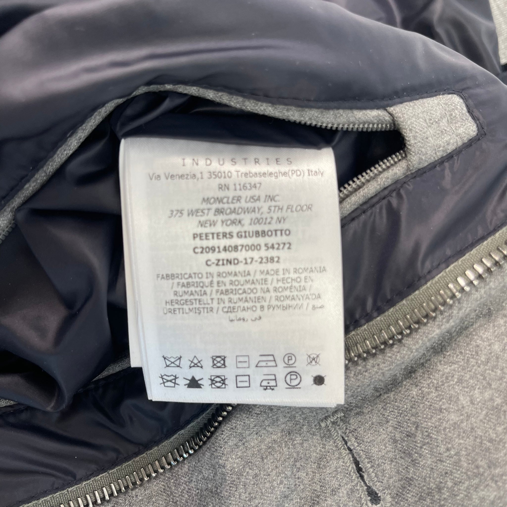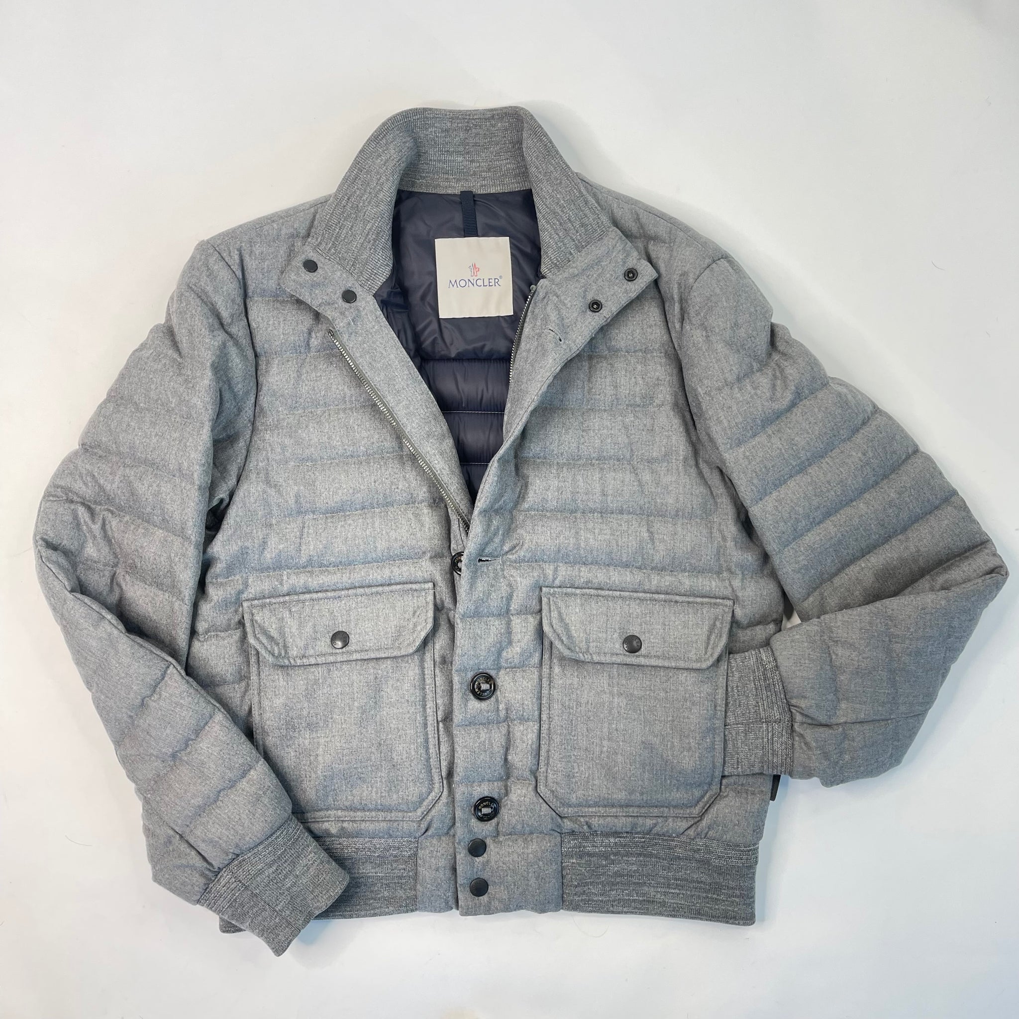 MONCLER PEETERS GREY WOOL QUILTED GOOSE DOWN JACKET UNISEX