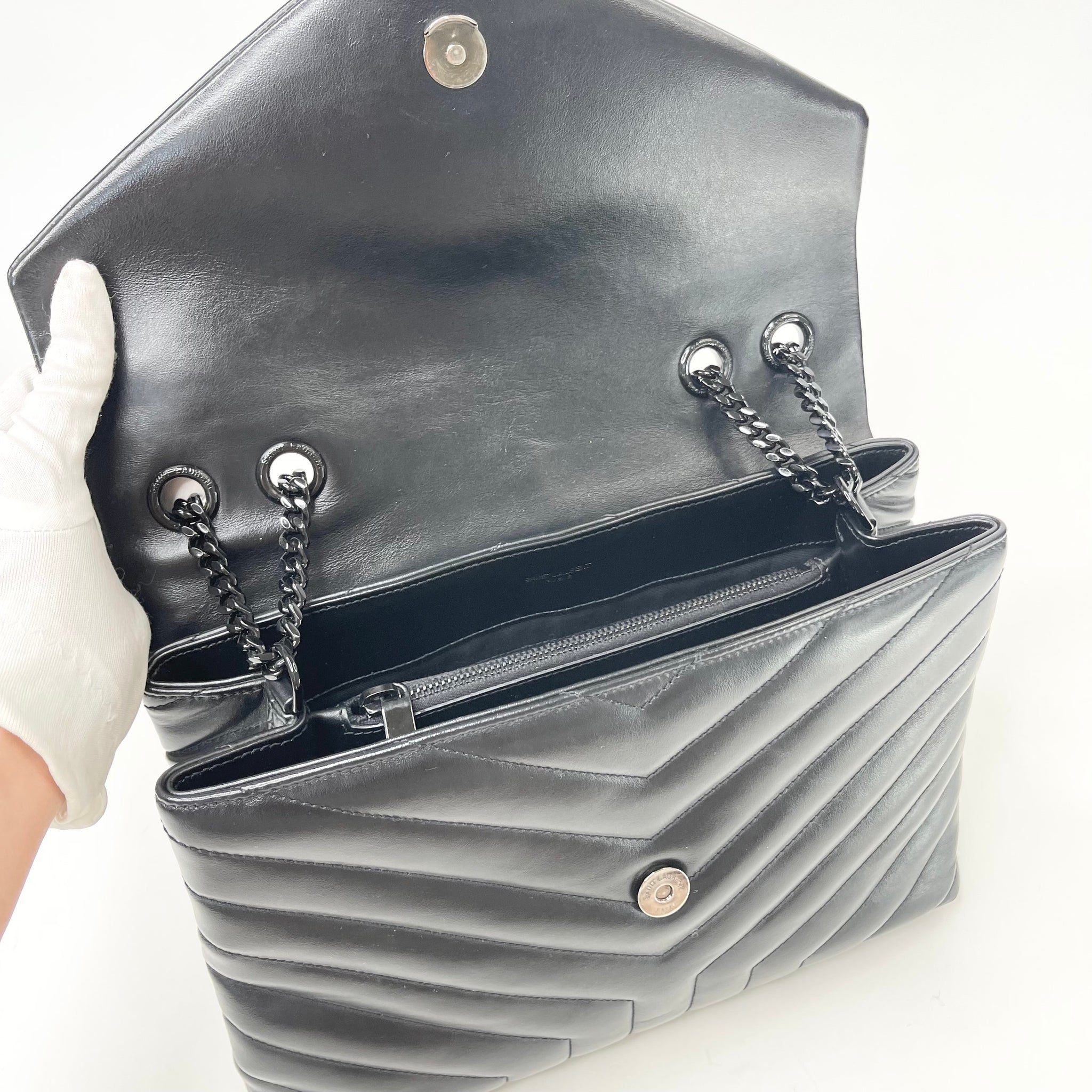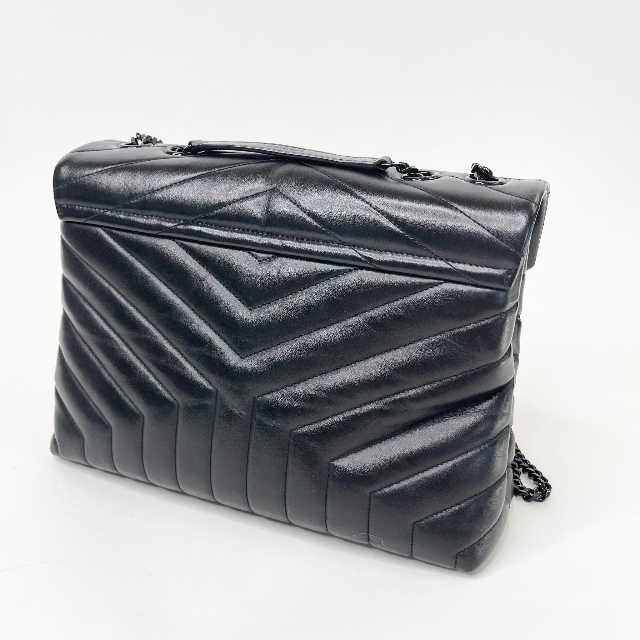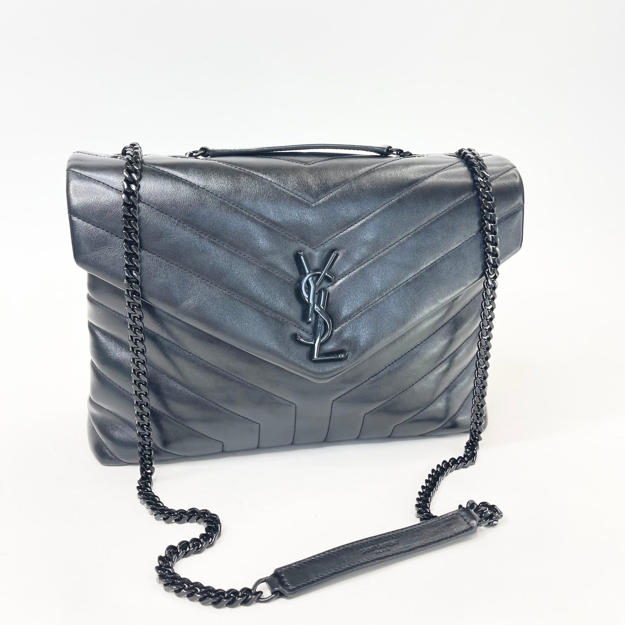SAINT LAURENT YSL LOULOU MEDIUM IN BLK LEA W BLK HW