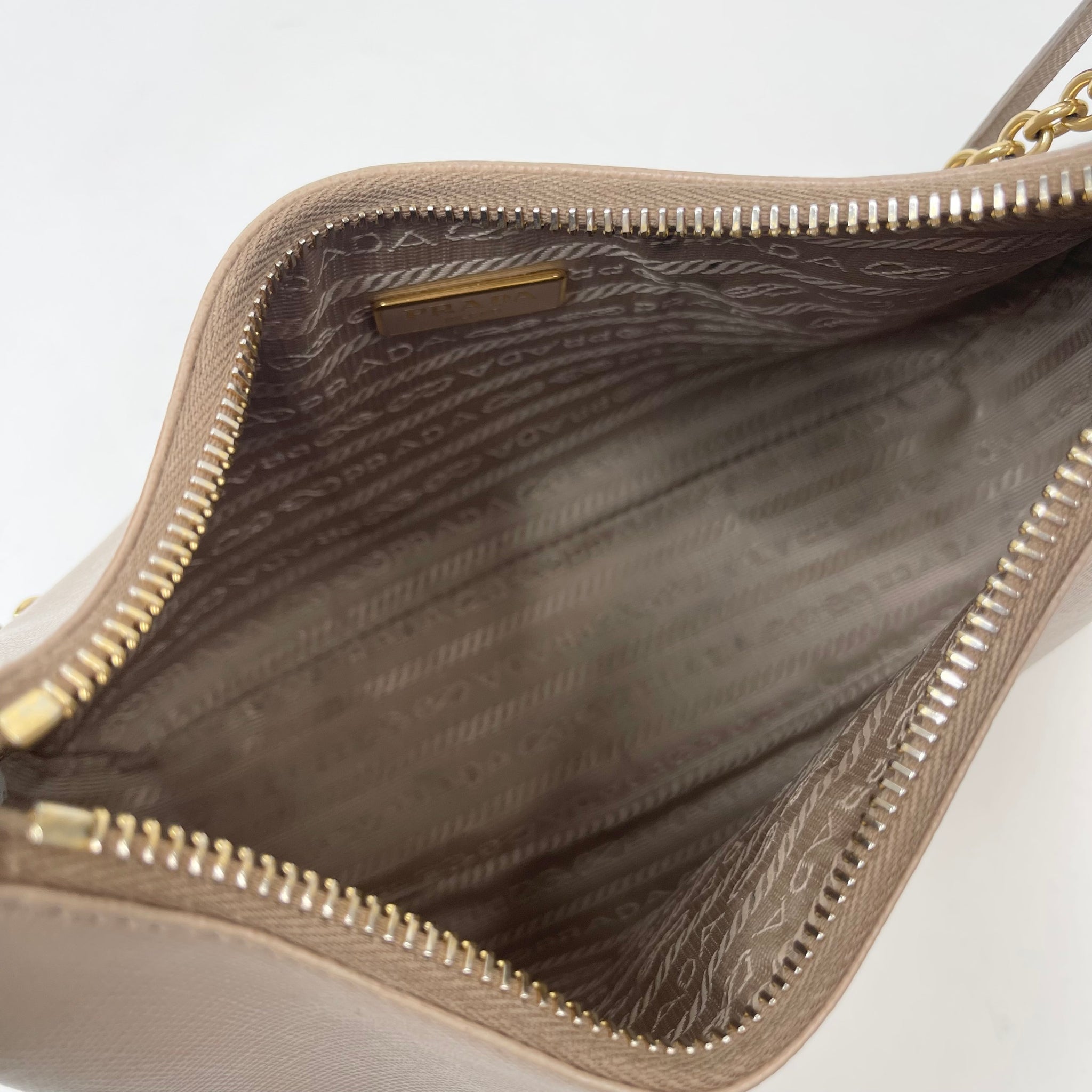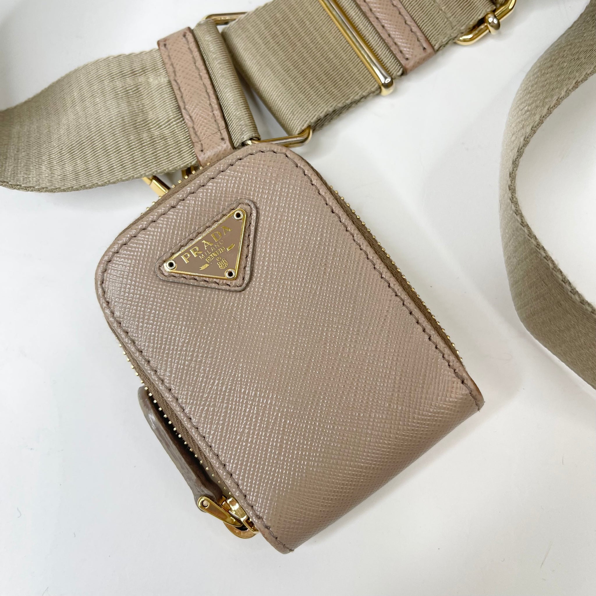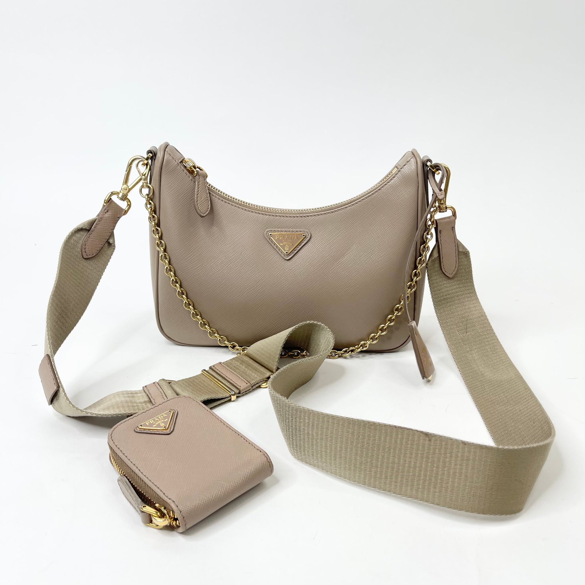 PRADA RE EDITION 2005 CROSSBODY IN BEIGE SAFFIANO LEA & GHW