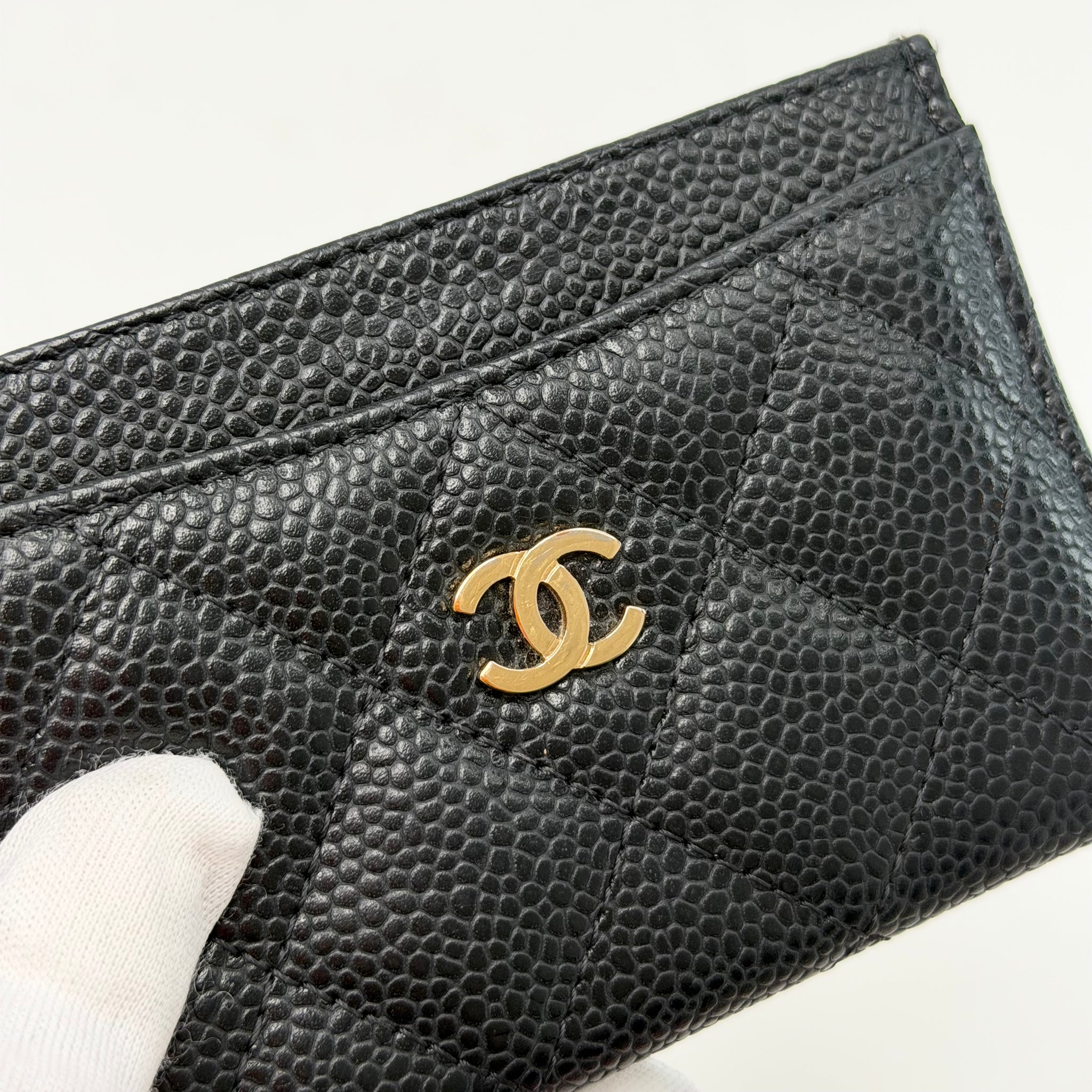 CHANEL CLASSIC CARD HOLDER IN BLK CAV LEA & GHW